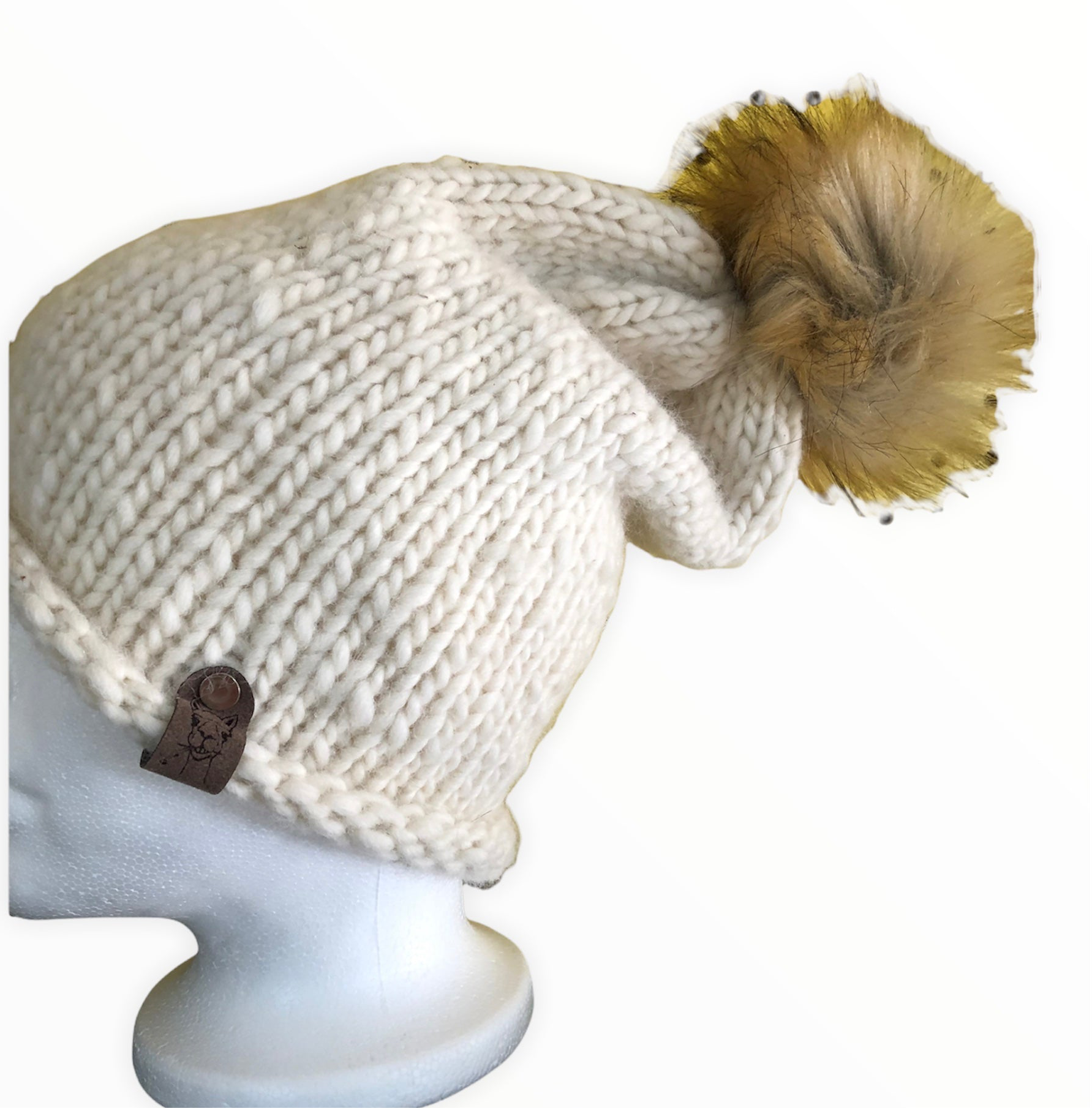 Made with Alpaca Lopi fibre gives this hat a chunky look, but not a heavy feel. One size
